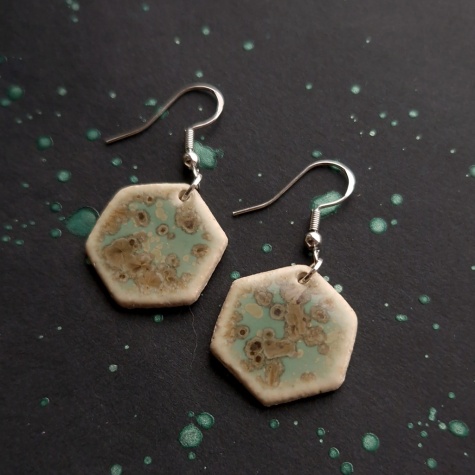 Diese Keramikohrringe werden von uns selbst von Hand gefertigt und glasiert.