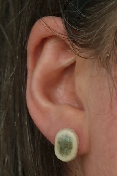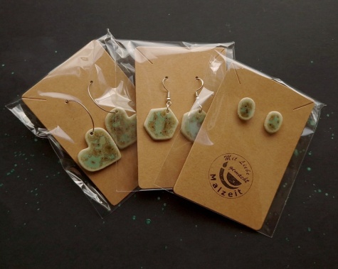 Diese Keramikohrringe werden von uns selbst von Hand gefertigt und glasiert.